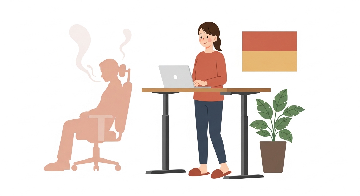 「座ることは新しい喫煙だ」——このフレーズを初めて聞いたとき、私はデスクの前に座ったままだった。それから3年、昇降デスクを導入して立って働くようになった。体への影響もさることながら、何より驚いたのは集中力の変化だ。今日はそのデータと実体験を合わせてお伝えしたい。